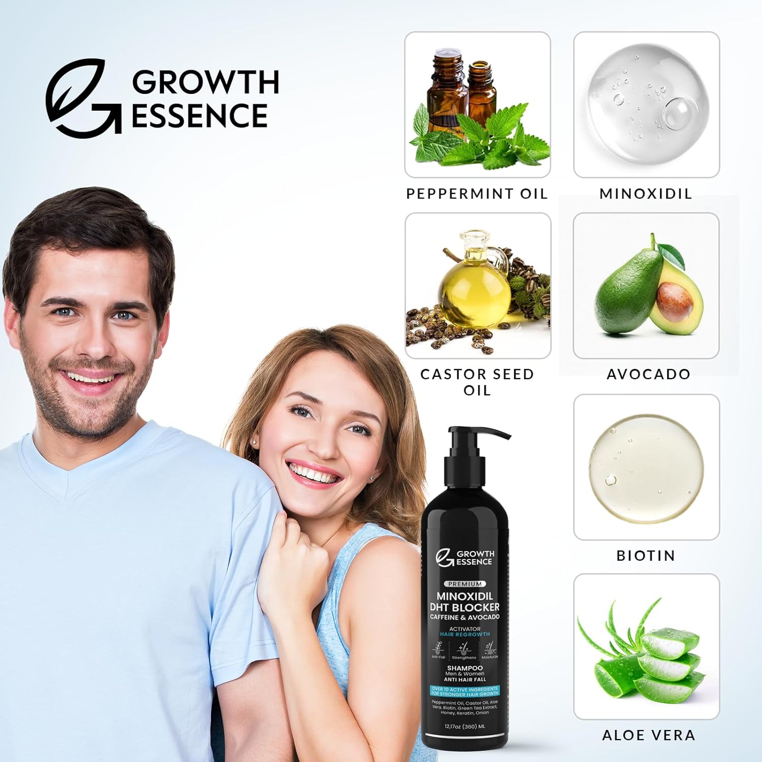 Minoxidil & Biotin Shampoo for Hair Growth - Enriched with Caffeine, Castor Oil & Onion - DHT Blocker for Thicker, Healthier Hair - Strengthening Formula for Men & Women